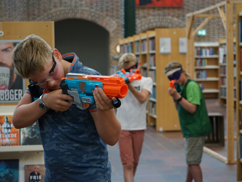 Efter lukketid omdanner vi biblioteket til én stor arena, hvor du og dine venner kan dyste om, hvem der er vinder af bibliotekets Nerf Battle. Vi har Nerf Guns, pile til ammunition og sikkerhedsbriller klar til alle deltagere.