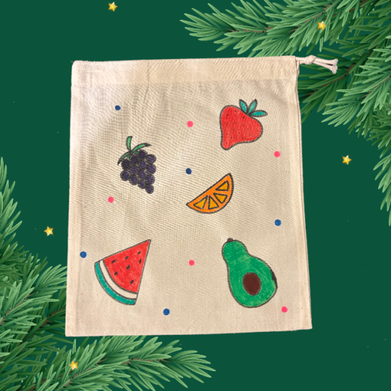 Ho ho ho, siger julemanden med sin gavesæk. Kom på biblioteket og dekorer en fin stofpose. Måske kan den bruges til en julegave eller til din madpakke?